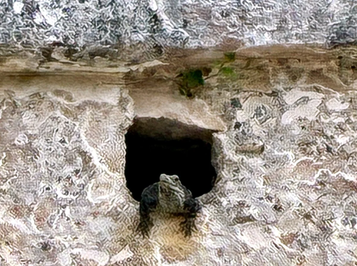 Can you spot the iguana who has taken up residence in a ruin?